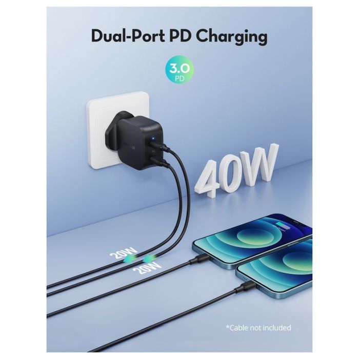 - مجموع الاخراج: 40W كحد اقصى (PD20W+PD20W)