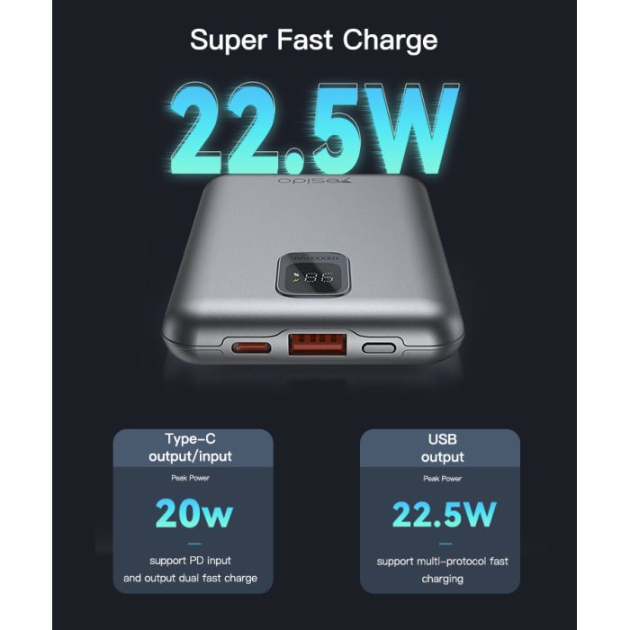 Yesido Power Bank 1x USB-A 1x USB-C 10000mAh